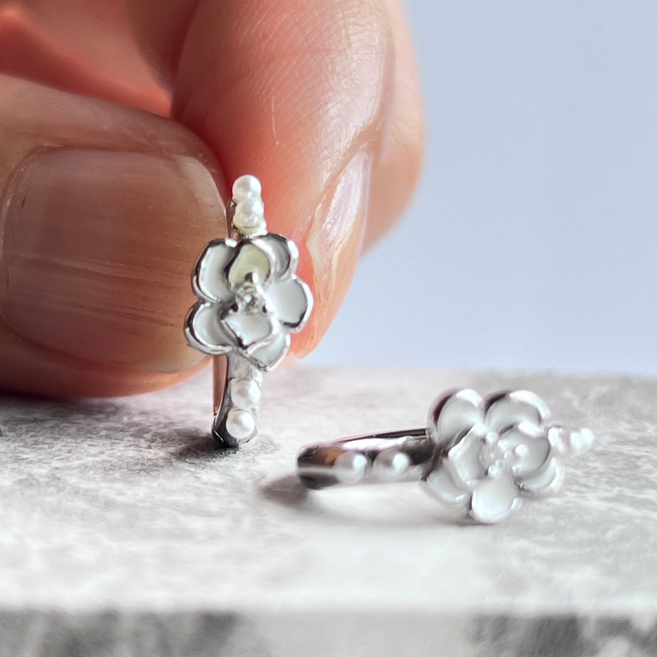 白い椿の花のモチーフが上品さと華麗な